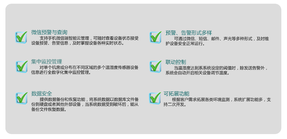 隨著信息技術(shù)的高速發(fā)展和普及,計(jì)算機(jī)系統(tǒng)及通信設(shè)備數(shù)量迅猛增加,機(jī)房(計(jì)算機(jī)中心、設(shè)備間、配線室、基站等)已經(jīng)成為各類企事業(yè)單位業(yè)務(wù)管理的核心平臺(tái)溫濕度監(jiān)測(cè)系統(tǒng)可以監(jiān)測(cè)機(jī)房是否保持在一個(gè)恒定的溫度范圍內(nèi),能夠有效避免溫度突然變化,為數(shù)據(jù)處理中心機(jī)房造成的損失。