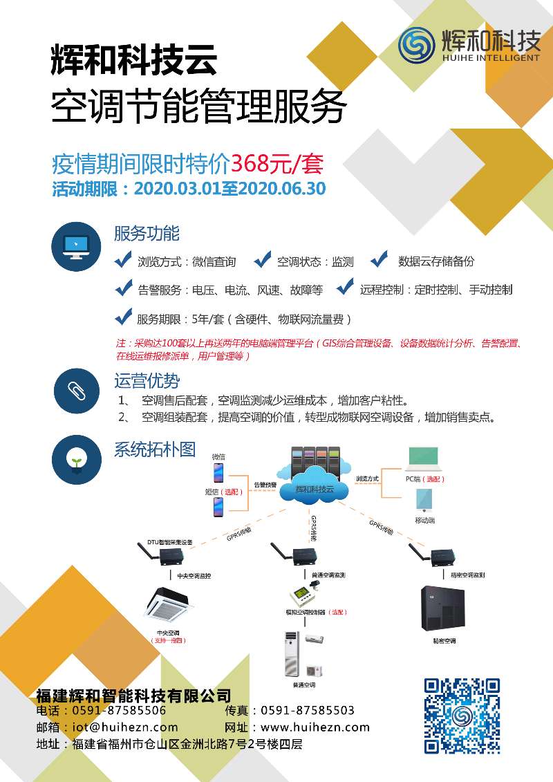 防疫期間限時特價--輝和科技云空調節(jié)能管理服務