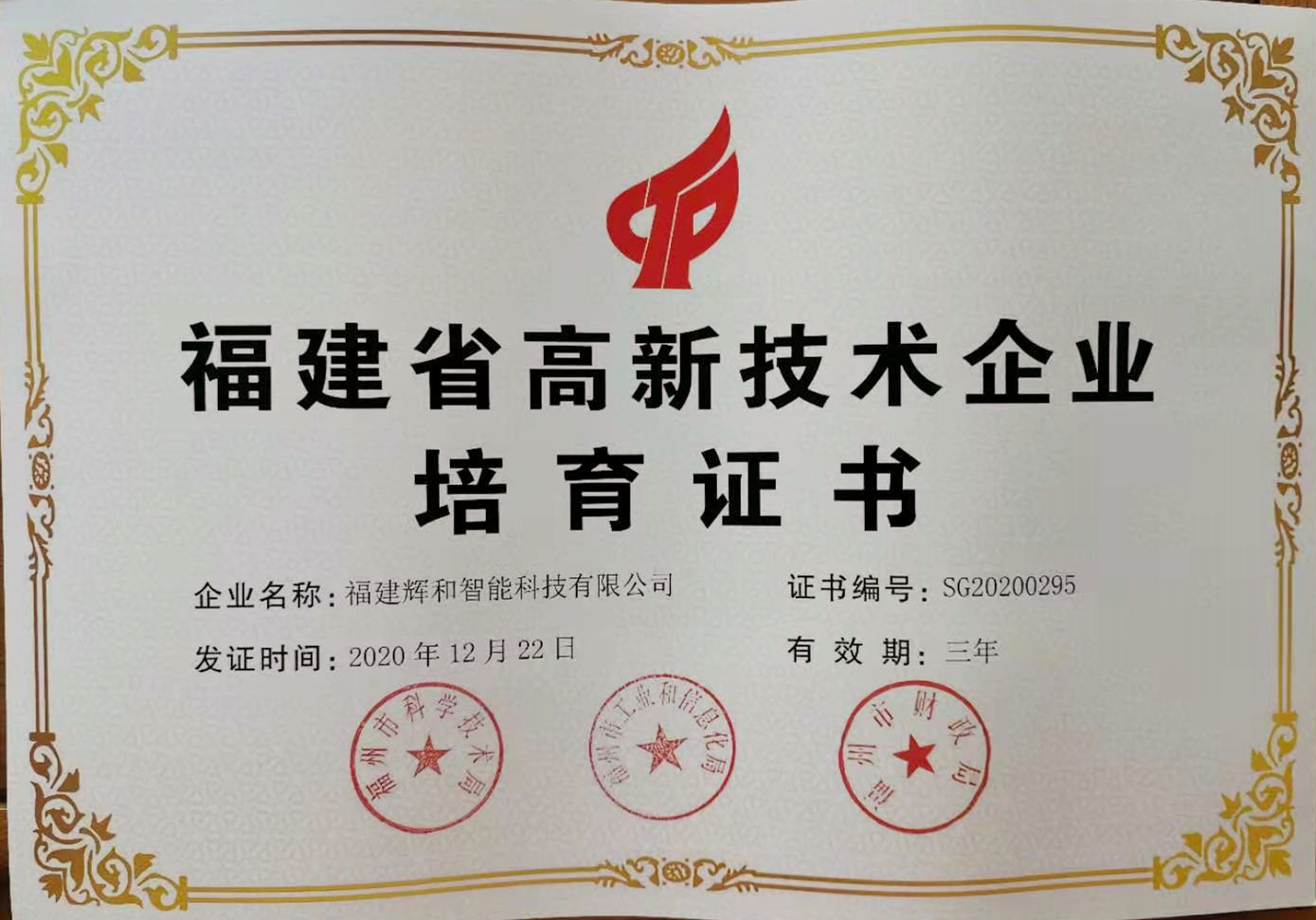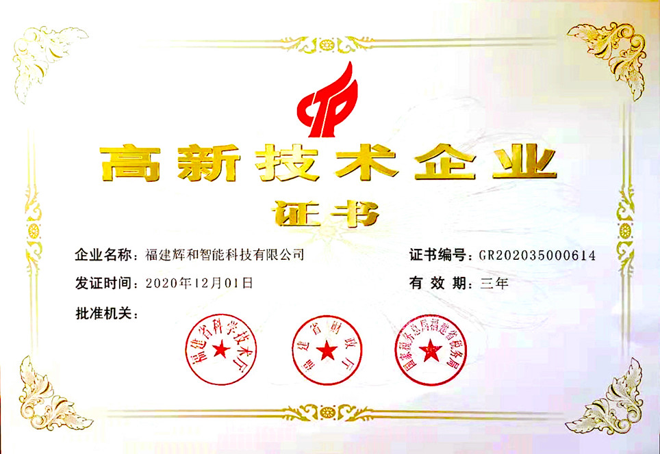 2021新年伊始,在這生機(jī)勃發(fā)之際,福建輝和科技喜迎佳音——根據(jù)《高新技術(shù)企業(yè)認(rèn)定管理辦法》、《高新技術(shù)企業(yè)認(rèn)定管理工作指引》的規(guī)定,經(jīng)福建省高新技術(shù)企業(yè)認(rèn)定管理工作小組辦公室組織專家評(píng)審,認(rèn)定福建輝和智能科技有限公司為國家及省級(jí)高新技術(shù)企業(yè)。
