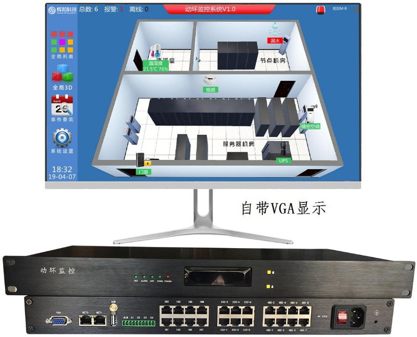 1、主機(jī)自帶 VGA 液晶顯示接口,可直觀顯示當(dāng)前動環(huán)運行狀態(tài);