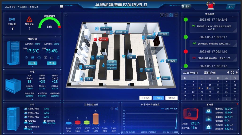 1、支持對(duì)接市電監(jiān)測(cè)模塊、三相電量?jī)x、UPS、蓄電池、柴油發(fā)電機(jī)等動(dòng)力系統(tǒng),實(shí)現(xiàn)對(duì)機(jī)房動(dòng)力系統(tǒng)物理安全狀態(tài)的實(shí)時(shí)感知;